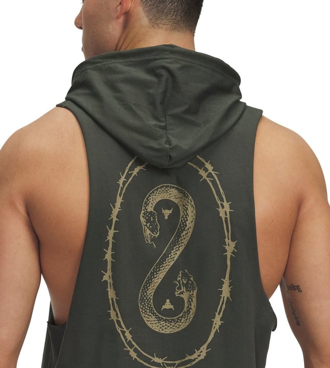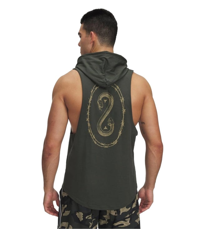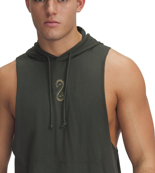 Devise a modish style statement by wearing this green hooded regular fit sleeveless sports hoodie from UNDER ARMOUR. Tailored to sartorial perfection from premium quality fabric, it assures a soft and soothing touch against the skin. The printed pattern makes it a captivating choice.