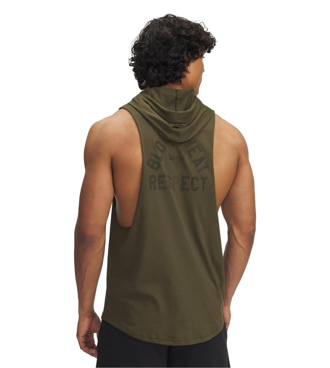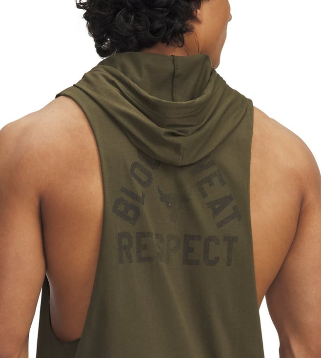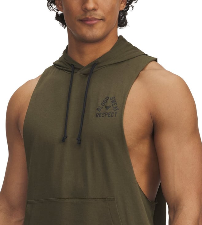 Coalesce urban charm and fashion wearing this green regular fit sleeveless sports hoodie from UNDER ARMOUR. Tailored to sartorial perfection from premium quality fabric, it assures a soft and soothing touch against the skin. The round neck adds to its appeal. The printed pattern makes it a captivating choice.