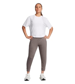 Add an extra charm to your look wearing this pair of grey relaxed fit sports trackpants from UNDER ARMOUR. Tailored to sartorial perfection from premium quality fabric, it assures a soft and soothing touch against the skin.