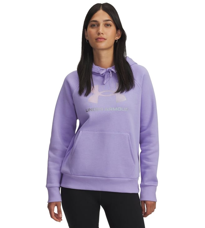 Purple Regular Fit Solid Long Sleeves Rival Fleece Shimmer Hoodie