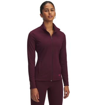 The UNDER ARMOUR Maroon Regular Fit Solid Long Sleeves Motion Jacket is a sleek fusion of style and performance. Crafted for all genders, this jacket boasts a rich maroon hue that exudes sophistication. Its solid pattern and streamlined design make it a versatile wardrobe staple. Constructed from premium, breathable fabric, it ensures comfort and flexibility, perfect for dynamic movements. The long sleeves and tailored fit provide a modern silhouette, making it ideal for both athletic pursuits and casual outings.