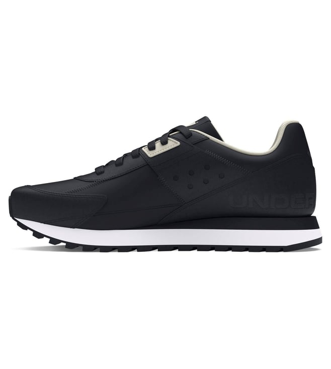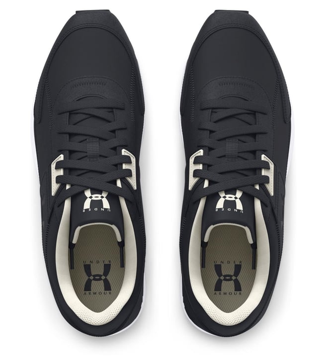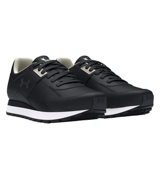 Elevate your running game with the UNDER ARMOUR mens Essential black running shoes. Crafted with a durable leather upper and a cushioned rubber sole, these sleek black kicks provide the perfect combination of style and performance. Whether you are hitting the pavement or the treadmill, these shoes offer superior comfort and support to keep you going mile after mile. Upgrade your running experience with these essential shoes that are sure to become your go to for all your fitness adventures.