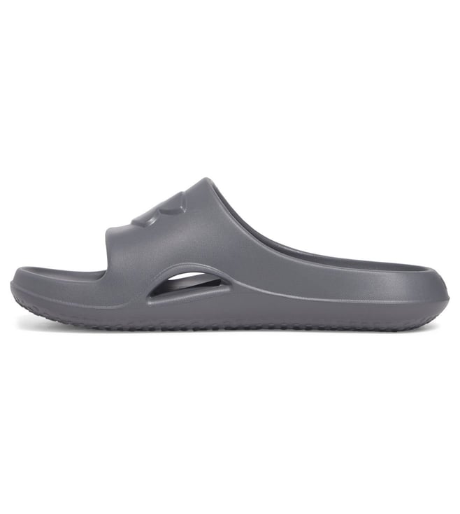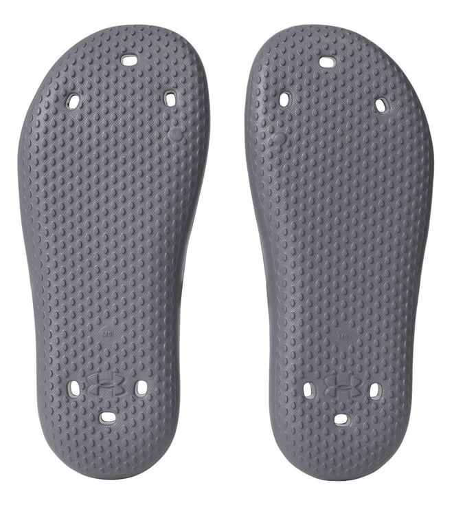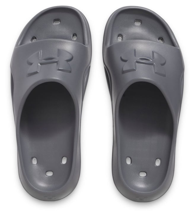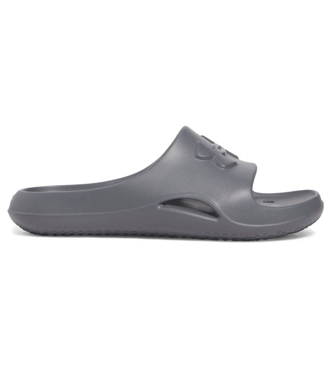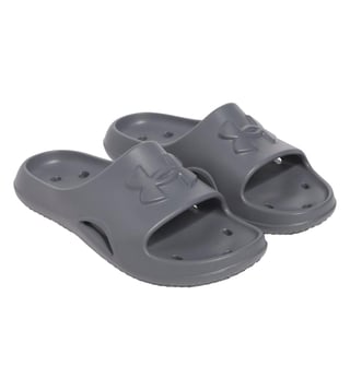 Elevate your post workout style with UNDER ARMOUR mens Locker V grey slides. Designed for comfort and performance, these slides feature a cushioned footbed for all day comfort and a quick drying strap for added convenience. The durable outsole provides traction on various surfaces, making them perfect for the gym or casual outings. Stay comfortable and stylish with the UNDER ARMOUR mens Locker V grey slides.