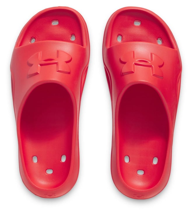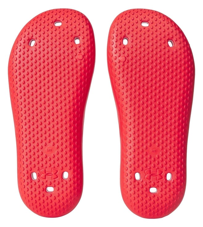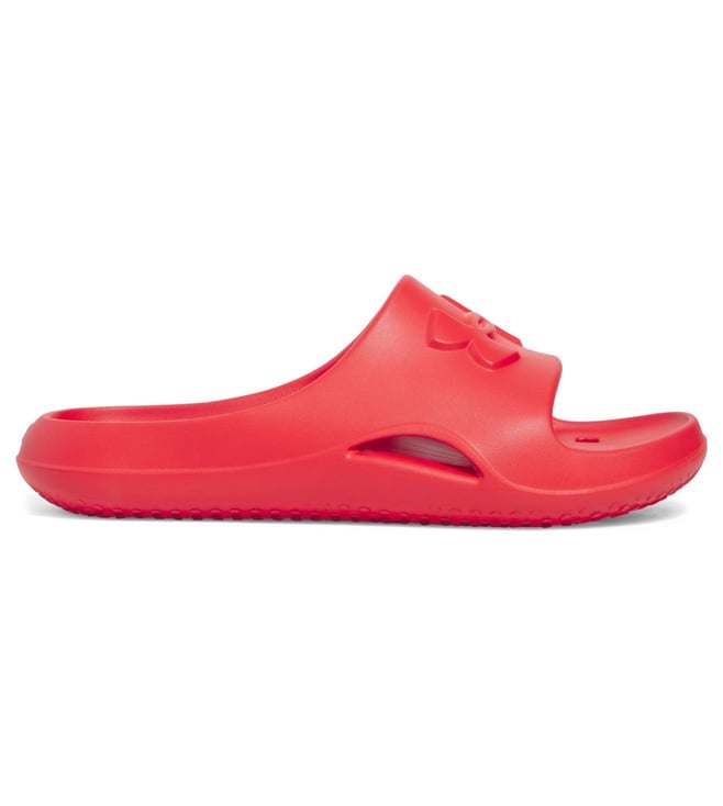 Elevate your post workout style with the UNDER ARMOUR mens Locker V red slides. These slides combine comfort and performance, featuring a cushioned footbed and adjustable strap for a secure fit. The bold red color adds a pop of personality to your look, while the durable construction ensures long lasting wear. Whether youre hitting the gym or running errands, these slides are the perfect blend of style and functionality. Upgrade your footwear game with the UNDER ARMOUR mens Locker V red slides today.