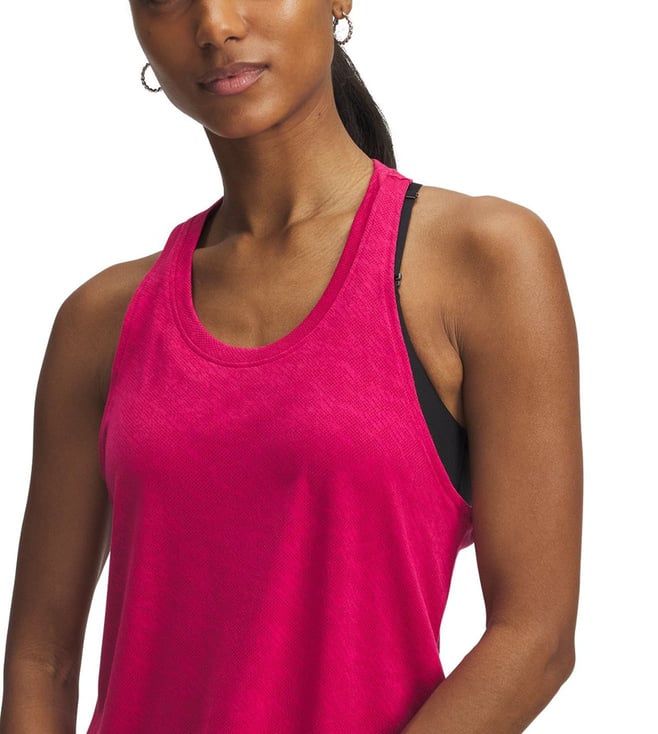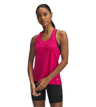 Redefine your charming look with this exclusive pink slim fit sleeveless sports t-shirt from UNDER ARMOUR. Tailored to sartorial perfection from premium quality fabric, it assures a soft and soothing touch against the skin. The round neck adds to its appeal.