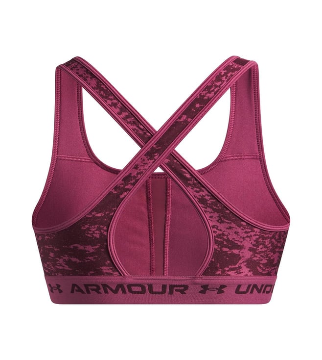 UNDER ARMOUR Red Non-Wired Padded Medium Support Crossback Printed Sports Bra