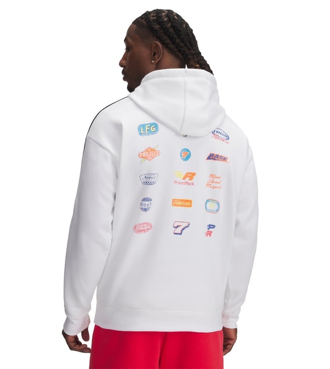 UNDER ARMOUR White Project Rock Printed Regular Fit Hoodie