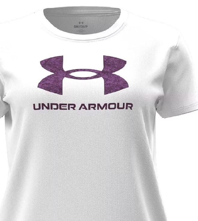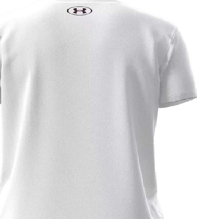 Exhibit your rich sense of style by wearing this white regular fit sports t-shirt from UNDER ARMOUR. Tailored to sartorial perfection from premium quality fabric, it assures a soft and soothing touch against the skin. The round neck adds to its appeal. Exuding short sleeves, it is sure to fetch you compliments from all. The printed pattern makes it a captivating choice.