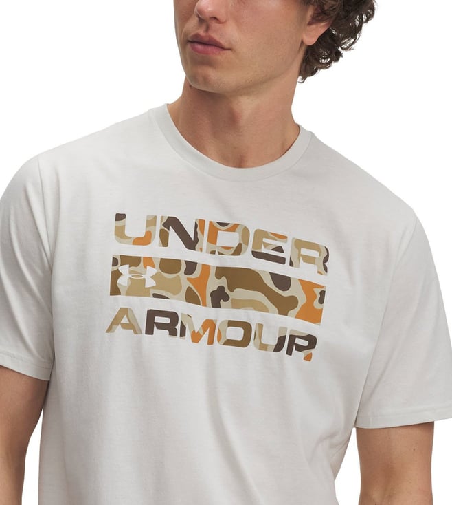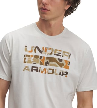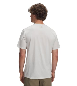 Give your wardrobe a fashionable spin with this white regular fit sports t-shirt from UNDER ARMOUR. Tailored to sartorial perfection from premium quality fabric, it assures a soft and soothing touch against the skin. The round neck adds to its appeal. Exuding short sleeves, it is sure to fetch you compliments from all. The printed pattern makes it a captivating choice.