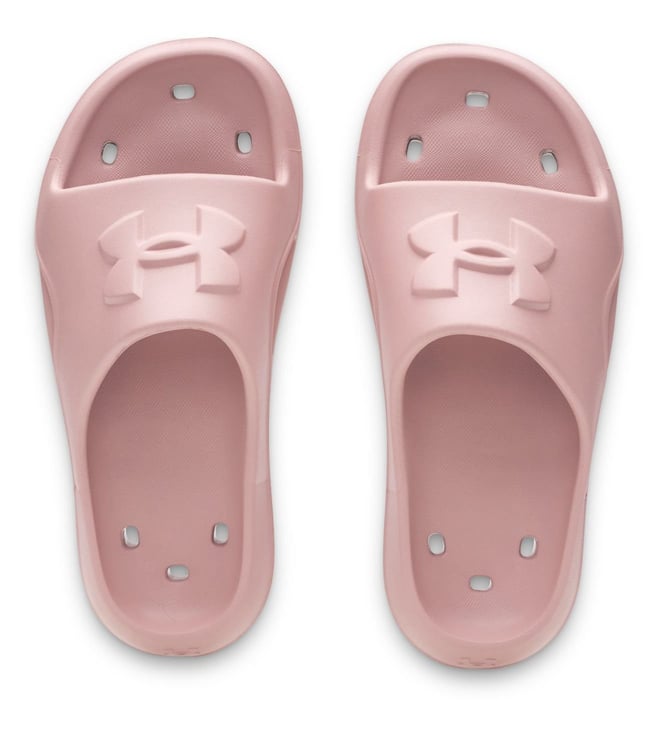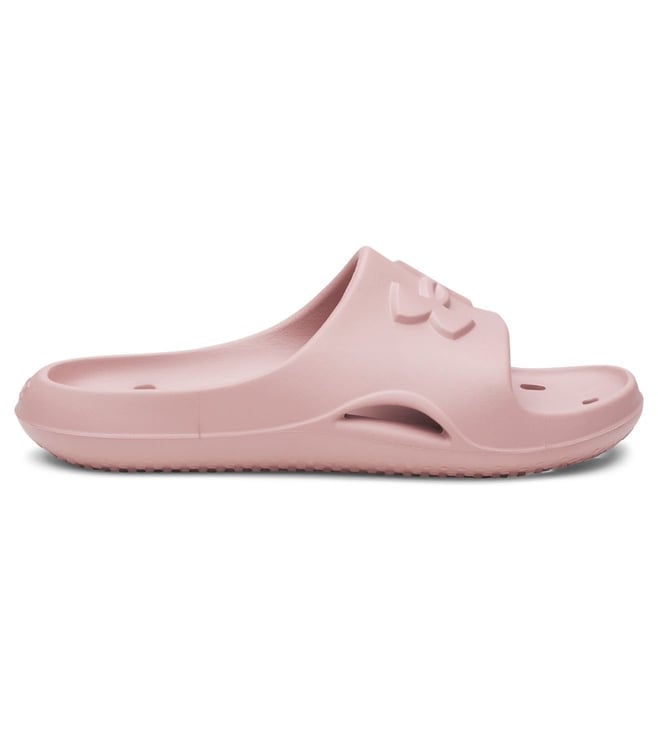 Step up your athleisure game with the UNDER ARMOUR womens Locker V pink slides. These stylish slides are perfect for post workout relaxation or casual outings. The cushioned footbed provides all day comfort, while the adjustable strap ensures a secure fit. The vibrant pink color adds a fun pop to any outfit. Whether youre hitting the gym or running errands, these slides are a must have for fashion forward women on the go. Get your pair today and step out in style!