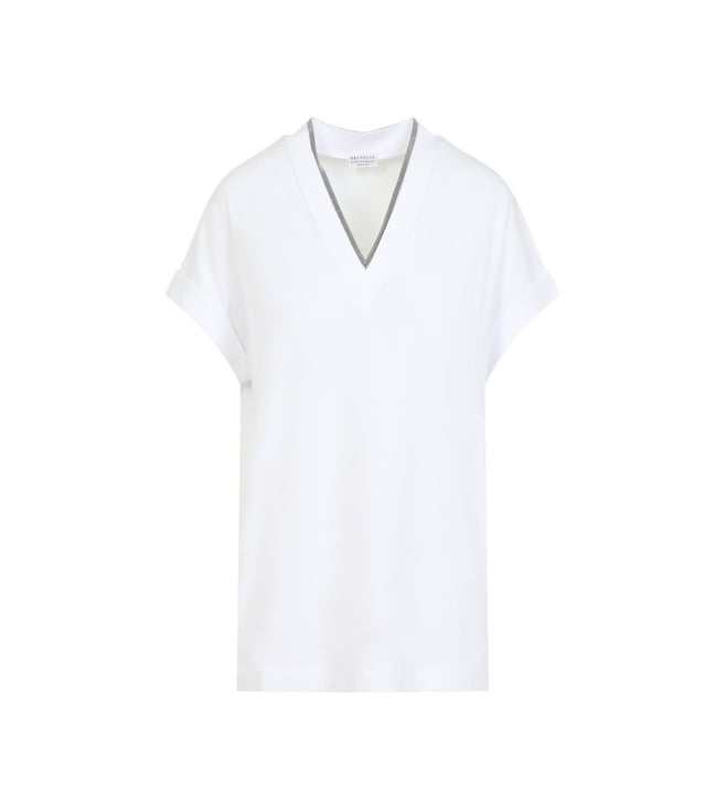 White V-Neck Monile Cotton T-shirt