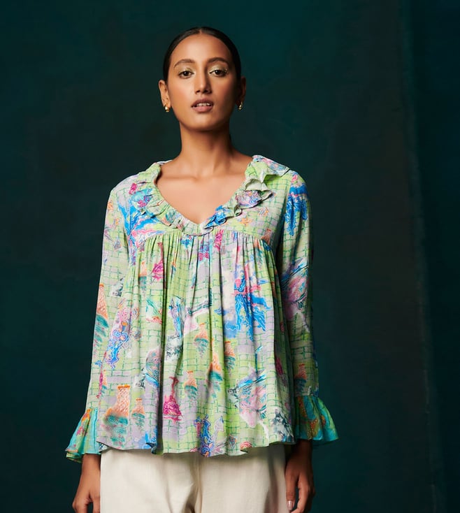 Parrot Synthetic Crepe Relaxed Fit Printed Top
