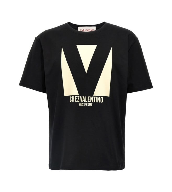 Elevate your style with the Valentino Garavani Black Graphic Relaxed Fit t-shirt. Cotton jersey t-shirt with front 'chez valentino' print, crew neck, short sleeves. Comfort fit. Products purchased from Darveys are supported exclusively by the warranty/exchange policies of Darveys and its partner boutiques. Brand owners and their channel partners are not responsible for exchange/warranty services for items purchased through Darveys.