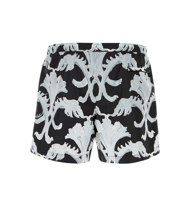 Elevate your style with the Valentino Garavani Black Green Printed Swimming shorts. Two side pockets. One back pocket. Elastic waistband with drawstrings. Designed with attention to detail, it offers comfort, durability, and style for everyday wear. Products purchased from Darveys are supported exclusively by the warranty/exchange policies of Darveys and its partner boutiques. Brand owners and their channel partners are not responsible for exchange/warranty services for items purchased through Darveys.