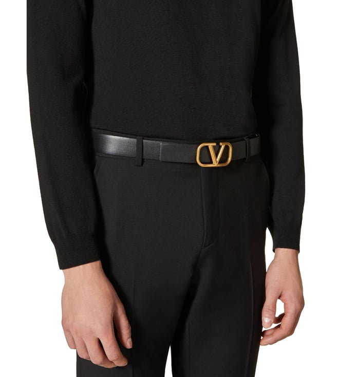Elevate your casual look with the Valentino Garavani casual black leather belt. Crafted with luxurious black leather and accented with gold hardware, this belt exudes sophistication and style. Perfect for men who appreciate quality and attention to detail, this accessory seamlessly complements any outfit, from jeans to dress pants. Make a statement with Valentino Garavani.