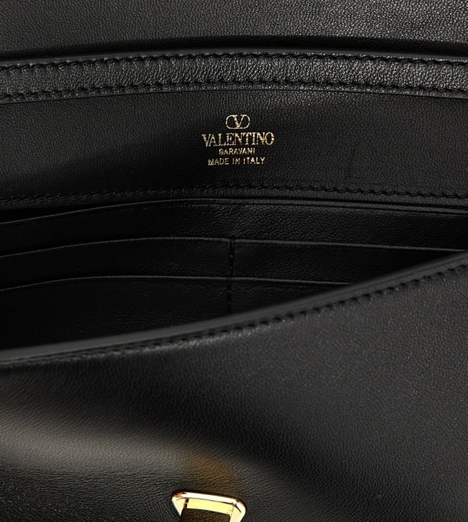Expand the collection of your accessories in a trendy way with this bag from Valentino Garavani. Black soft grain leatherbig v logotop flaptwist lockdetachable shoulder strapmain partbrand logo inner sealinternal card slotinternal stitched pockets Products purchased from Darveys are supported exclusively by the warranty/exchange policies of Darveys and its partner boutiques. Brand owners and their channel partners are not responsible for exchange/warranty services for items purchased through Darveys.