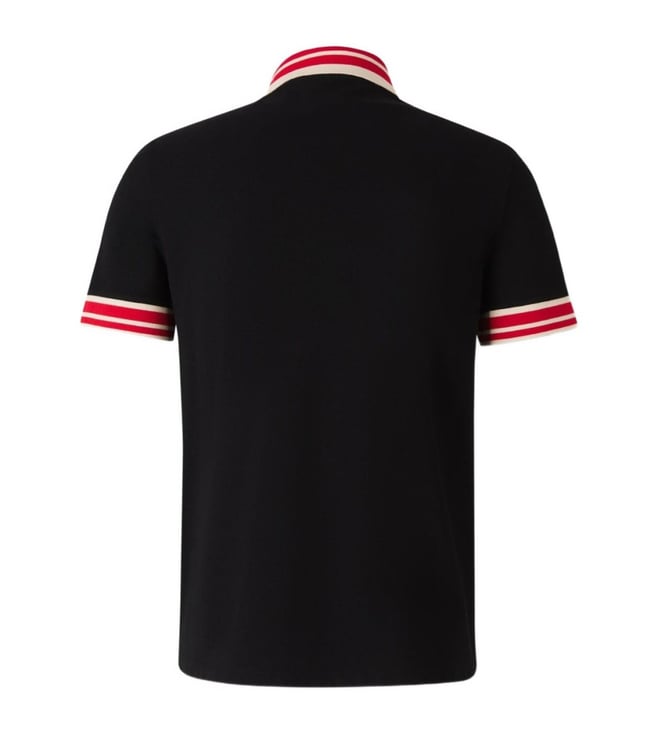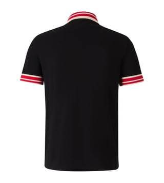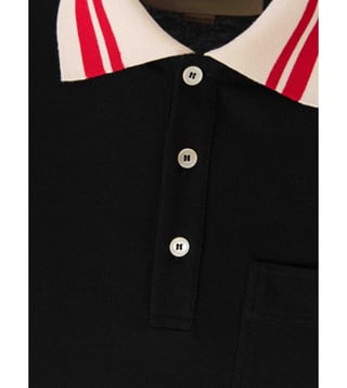 Elevate your style with the Valentino Garavani Black Striped polo t-shirt. Valentino ready to wear black short front button fastening ribbed cuffs stripe trim vlogo signature cotton polo shirt.