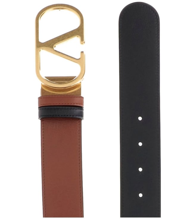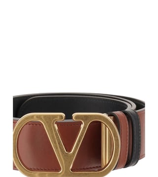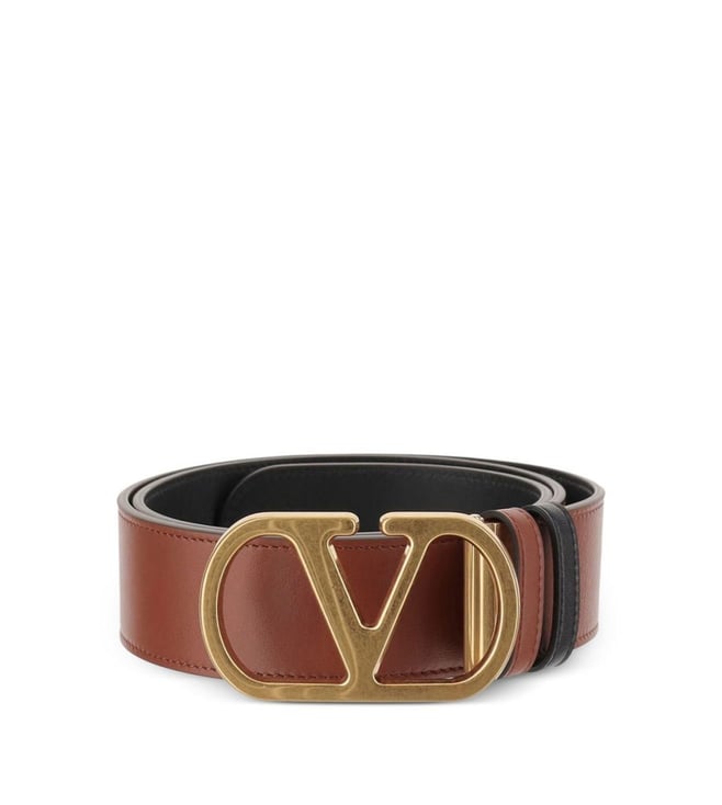 Valentino Garavani Brown VLogo Signature Leather Belt: Valentino Ready To Wear brown leather gold-tone buckle VLogo Signature reversible five holes VLogo signature leather belt. Products purchased from Darveys are supported exclusively by the warranty/exchange policies of Darveys and its partner boutiques. Brand owners and their channel partners are not responsible for exchange/warranty services for items purchased through Darveys.