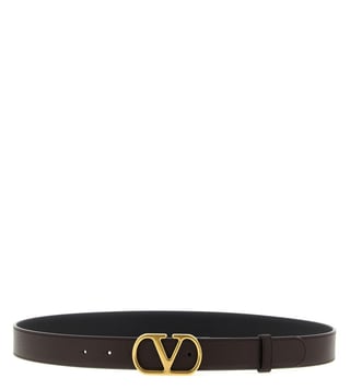 Elevate your casual style with the Valentino Garavani Dark brown Leather Belt. Crafted from luxurious dark brown leather and featuring a striking gold-tone Vlogo plaque, this belt exudes sophistication and elegance. The black reverse and adjustable push-stud fastening offer versatility and comfort, while the 30 Vlogo signature adds a touch of designer flair. Perfect for the modern man looking to make a statement, this belt is a must-have accessory for any wardrobe.