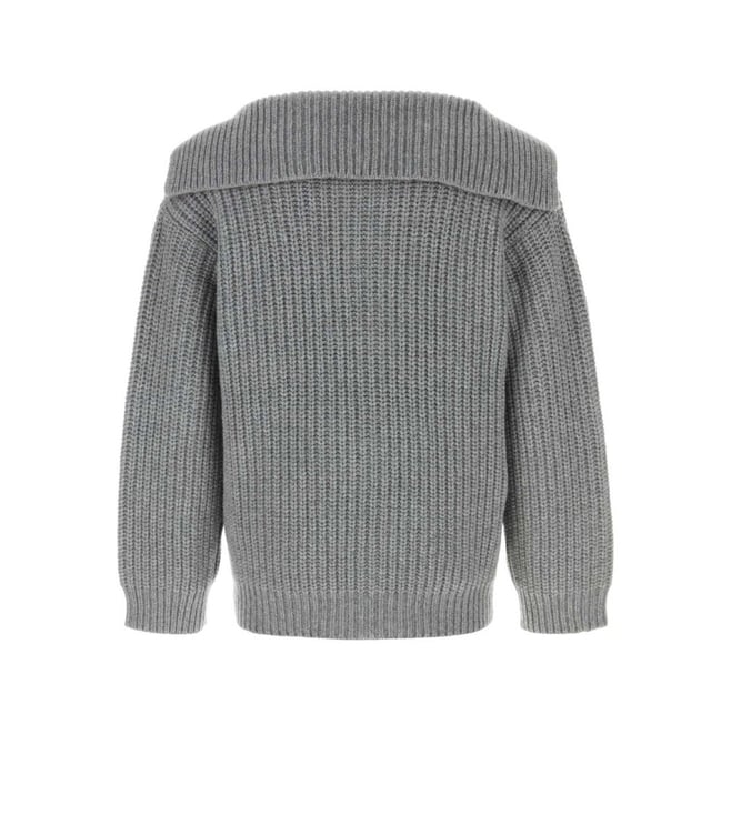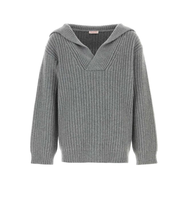 Elevate your style with the Valentino Garavani Grey Sweater. Light grey tricot knit spread collar vneck long sleeves ribbed cuffs and hem. Products purchased from Darveys are supported exclusively by the warranty/exchange policies of Darveys and its partner boutiques. Brand owners and their channel partners are not responsible for exchange/warranty services for items purchased through Darveys.