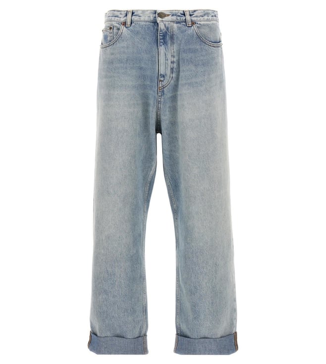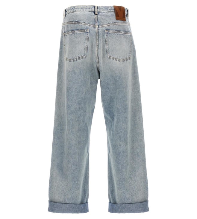 Valentino Garavani Light Blue Turn-Up Lightly Washed Straight Fit Jeans