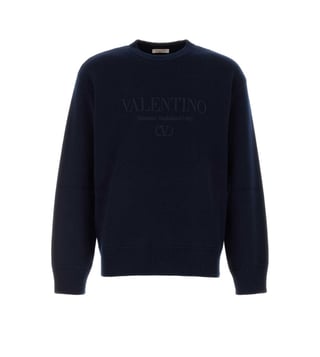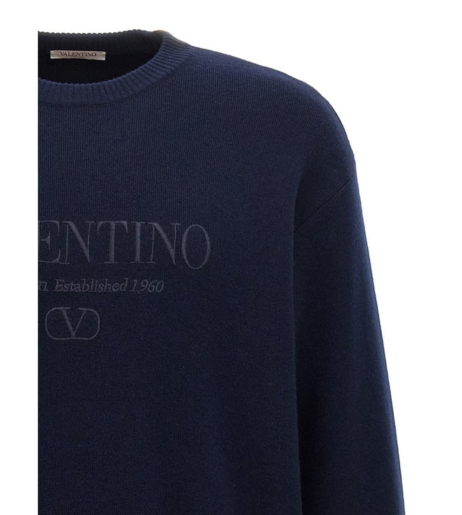 Valentino Garavani Navy Blue Embroidered Logo Sweater