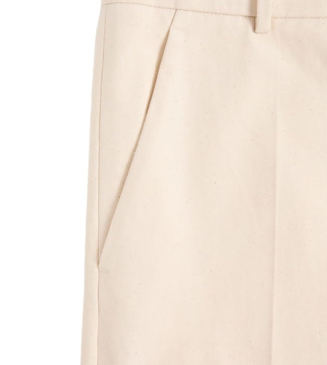 Elevate your style with these off-white pants, crafted from 100% cotton for ultimate comfort and breathability. The solid pattern offers a timeless appeal, perfect for any occasion. Designed for men who appreciate understated elegance, these pants seamlessly blend versatility with a modern edge. Products purchased from Darveys are supported exclusively by the warranty/exchange policies of Darveys and its partner boutiques. Brand owners and their channel partners are not responsible for exchange/warranty services for items purchased through Darveys.
