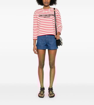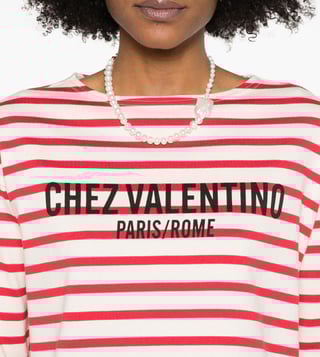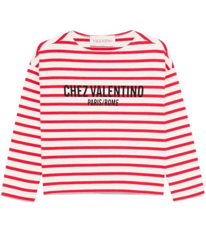 The Valentino Garavani Red Crewneck T-Shirt is a vibrant masterpiece for women, crafted from 100% cotton for ultimate comfort. Its regular fit ensures a flattering silhouette, while the bold red hue exudes confidence and style. The classic crewneck design is both timeless and versatile, making it a perfect addition to any wardrobe. This t-shirt is a statement piece that combines luxury with everyday wear, embodying the essence of Valentino's iconic fashion legacy.