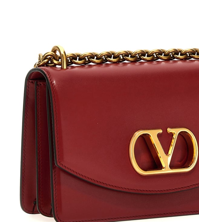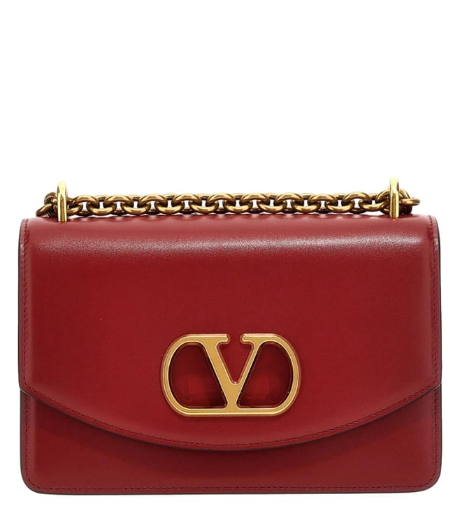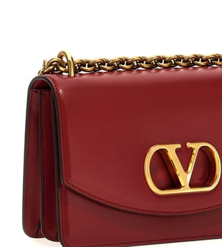 Expand the collection of your accessories in a trendy way with this bag from Valentino Garavani. Vain leather shoulder bag, magnetic flap closure with front metal vlogo signature cut out, sliding chain.