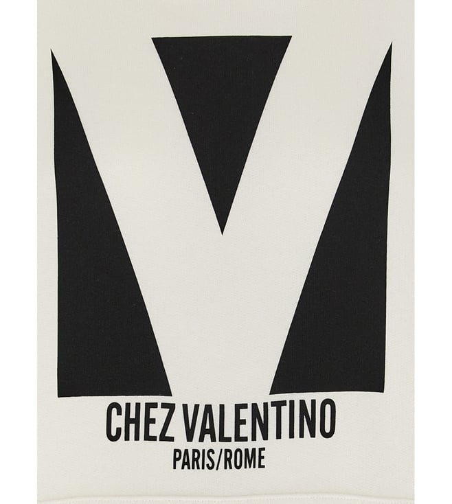 Elevate your style with the Valentino Garavani Off White Graphic Oversized Fit Hoodie. Brushed cotton hoodie with front 'chez valentino' print, kangaroo pocket, long cuffed sleeves. Oversized fit. Products purchased from Darveys are supported exclusively by the warranty/exchange policies of Darveys and its partner boutiques. Brand owners and their channel partners are not responsible for exchange/warranty services for items purchased through Darveys.