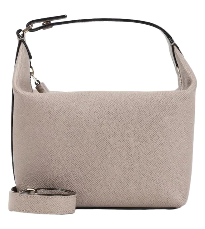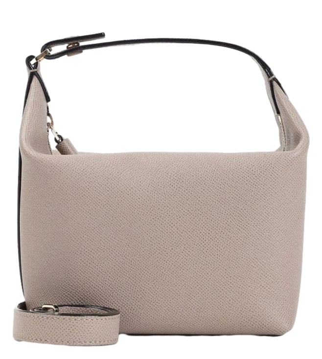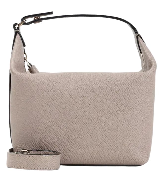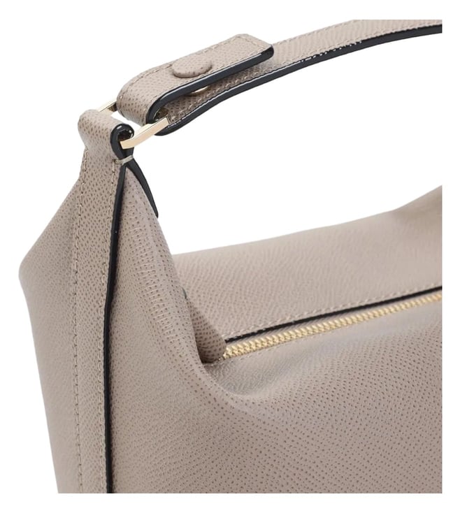 Valextra sahara beige leather mochi bag. Pure sahara beige leather bag, top handle, top zipped fastening, adjustable and detachable leather strap, one main compartment. Gold-tone hardware.