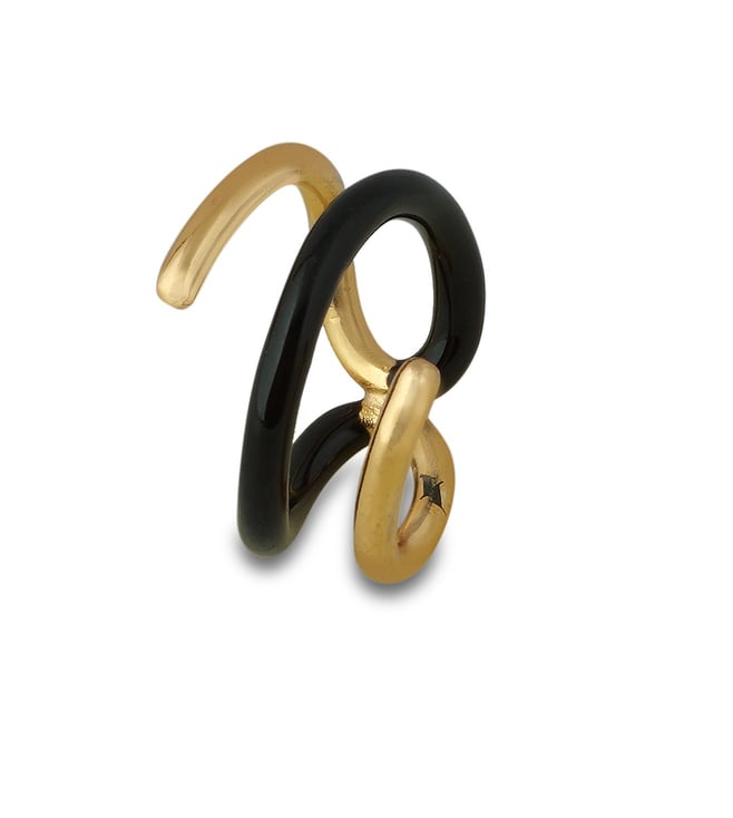 Brass Twistie 2-Way Black Enamel Gold Ring