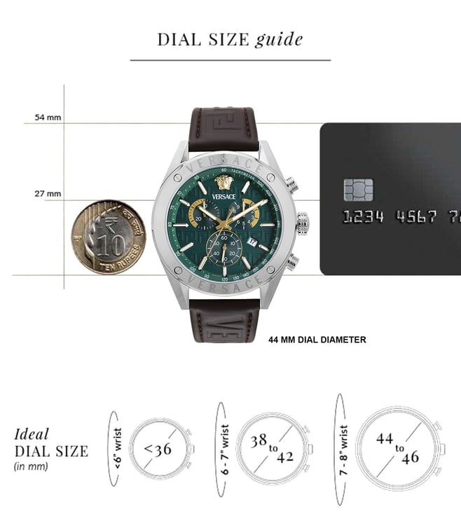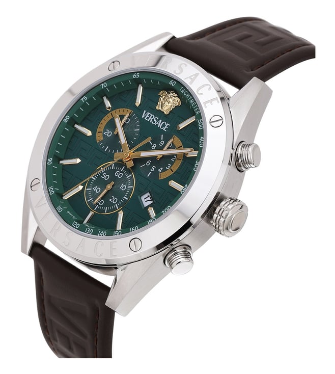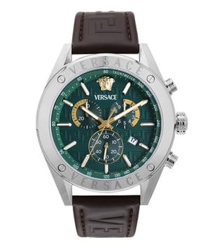The Versace Athletics VEKJA chronograph watch features a striking 44 mm green dial, combining precise timekeeping with a distinctive aesthetic. Its advanced chronograph functions allow accurate measurement of elapsed time, making it suitable for both professional and casual settings. Designed for men who value performance and style, this watch seamlessly blends luxury craftsmanship with functional durability.