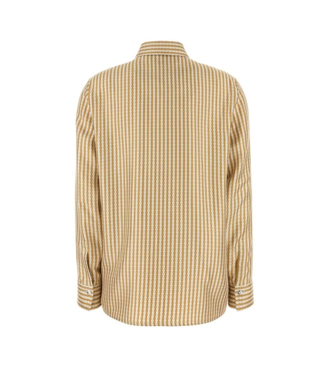 The Versace Light Beige Chain-Print Shirt is a stunning fusion of elegance and bold design, tailored for the modern woman. Its light beige hue serves as a sophisticated canvas for the intricate chain pattern, exuding luxury and style. Crafted from premium fabric, this shirt offers a soft, comfortable fit that drapes beautifully. The design is completed with a sleek closure, adding a touch of refinement. Perfect for any occasion, this shirt embodies the essence of Versace's iconic fashion legacy.