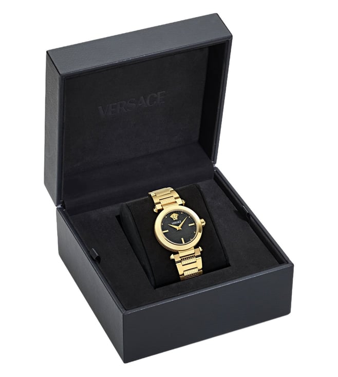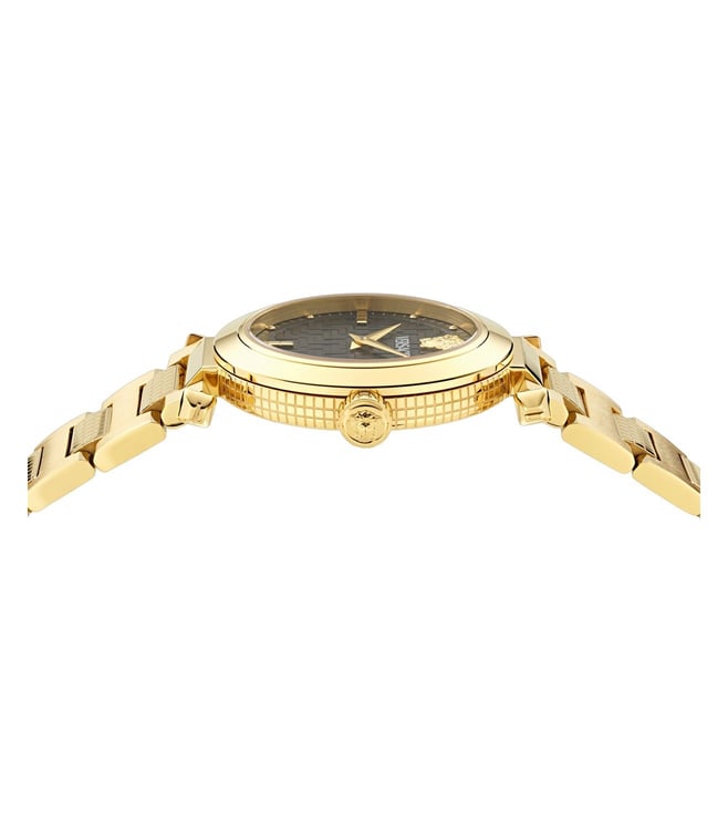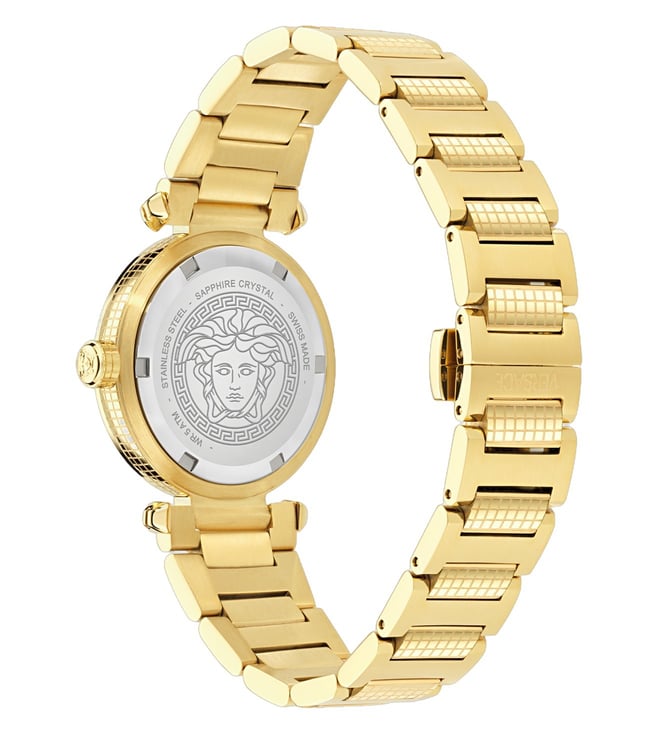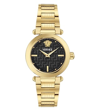 Its iconic case pays homage to the renowned patterns of Versace accessories, while the matelass effect on the dial adds a touch of elegance. Adorned with an enameled Greca on the top ring and a striking Medusa on the metal loop, this collection exudes a powerful personality. With each detail meticulously crafted, the "Versace Greek" watch stands as a symbol of timeless beauty and allure