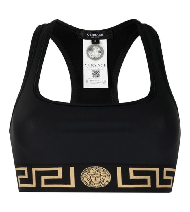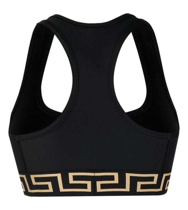 Versace Black Greca Racerback Non-Wired Non-Padded Logo Sports Bra