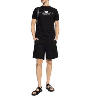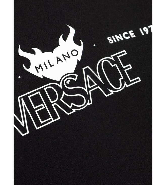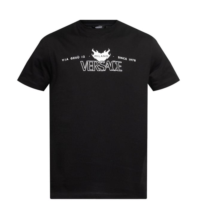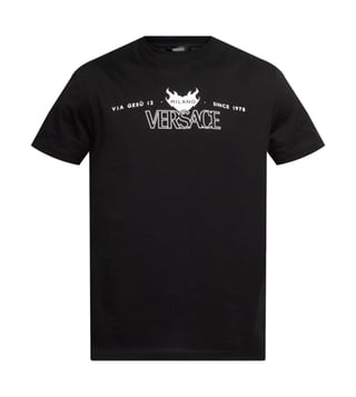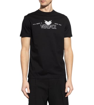 Elevate your style with the Versace Black Graphic t-shirt. Versace logo print short sleeves crewneck outer composition: cotton. Products purchased from Darveys are supported exclusively by the warranty/exchange policies of Darveys and its partner boutiques. Brand owners and their channel partners are not responsible for exchange/warranty services for items purchased through Darveys.
