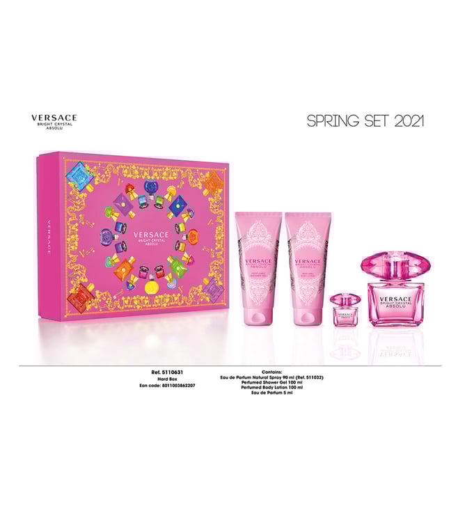 Flaunt your optimistic look with this gift set from Versace. The EDP is made for a woman who entrusts her femininity to the timeless seductive power of the bright crystal, in harmony with Versace glamour. The amazing vibrancy of yuzu immediately stands out between coloured and juicy pomegranate seeds creating an unusual freshness, pure and natural. The shower gel effectively cleanses and leaves a fragrance that lingers throughout the day. The body lotion locks in moisture and leaves an enticing scent. It comes in a pack of 4.