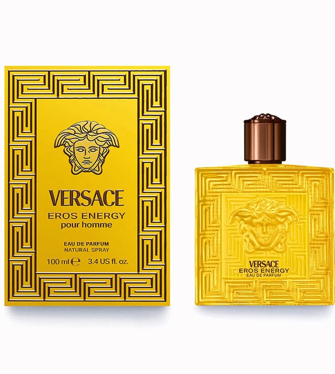The Eros Energy Eau de Parfum Pour Homme is a unique fragrance with powerful silage and a long-lasting presence. Love, energy, and desire are at the core of the creation, inspired by the breathtaking beauty of the Mediterranean coast. The fragrance comes in a clear yellow bottle with engraved Greca motifs, a central Medusa, and a bronze-coloured cap. To enhance the fragrance's longevity, apply it to key pulse points (neck, inner wrists, behind the ears, or chest). Avoid spraying the fragrance directly on delicate materials and jewellery, as this may cause damage.