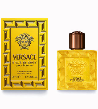 The Eros Energy Eau de Parfum Pour Homme is a unique fragrance with powerful silage and a long-lasting presence. Love, energy, and desire are at the core of the creation, inspired by the breathtaking beauty of the Mediterranean coast. The fragrance comes in a clear yellow bottle with engraved Greca motifs, a central Medusa, and a bronze-coloured cap. To enhance the fragrance's longevity, apply it to key pulse points (neck, inner wrists, behind the ears, or chest). Avoid spraying the fragrance directly on delicate materials and jewellery, as this may cause damage.