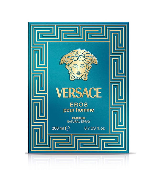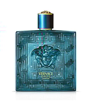Eros Parfum is a seductive fragrance inspired by the classical Greek God of love. Its confident and masculine notes embody sensuality and power. The fragrance is housed in a transparent blue bottle, adorned with a central Medusa, Greca engravings, and gold accents on the cap. To enhance the fragrance's longevity, apply it to key pulse points (neck, inner wrists, behind the ears, or chest). Avoid spraying the fragrance directly on delicate materials and jewelry, as this may cause damage.