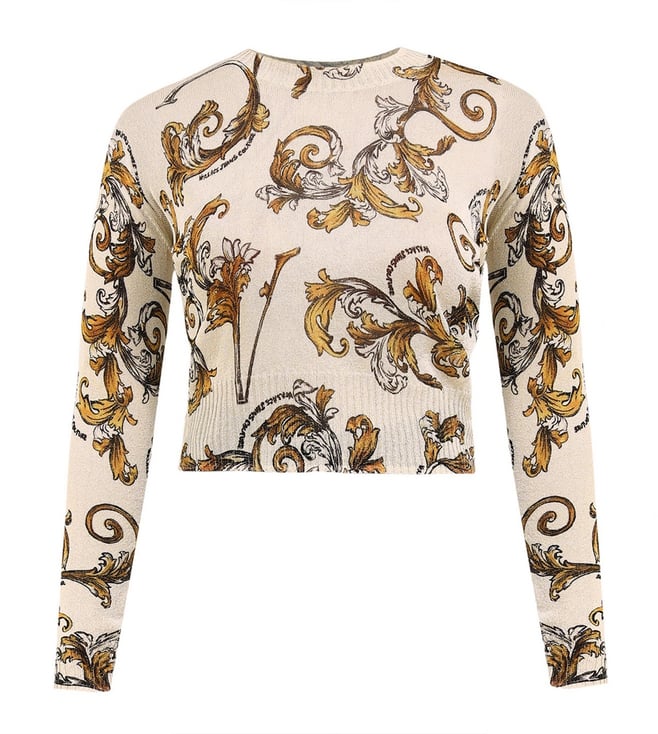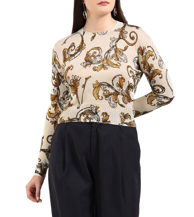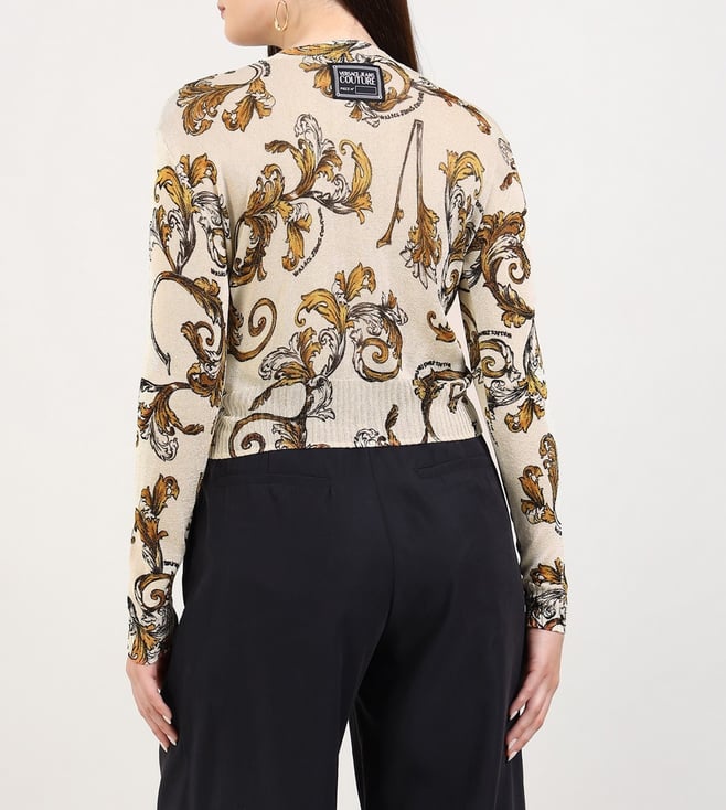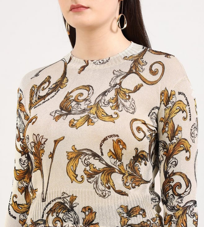 Versace Jeans Couture Beige Printed Regular Fit Sweater