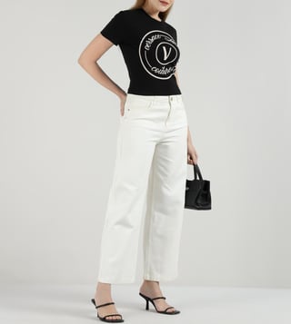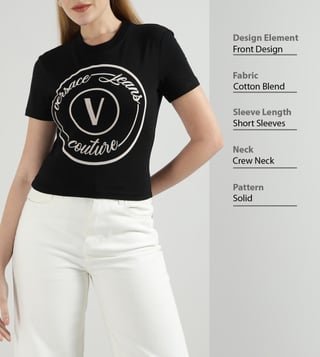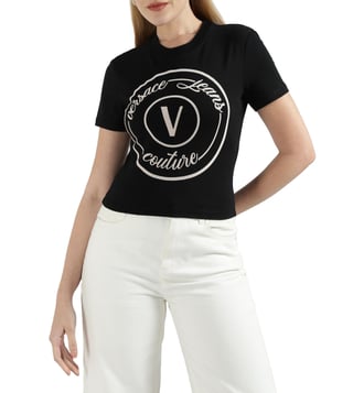 A fashion-forward essential, this T-shirt by Versace Jeans Couture is sure to earn you all the right attention. Featuring a round neck and half sleeves for a timeless appeal, it is decorated with chest logo print for an iconic look. Ideal for all casual occasions, it will complement a pair of jeans or chinos. The cotton-elastane fabric further promises ultimate wearing comfort.