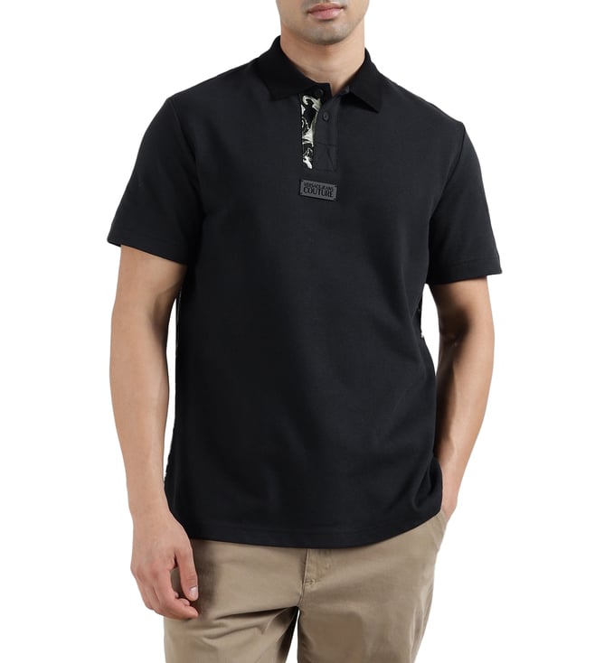 Black Short Sleeves Back All Over Print Baroq Front Plackett Polo