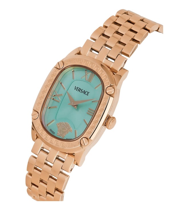 The Versace Greca Couture 29x40 mm womens analog watch features a vibrant blue dial encased in a distinctive rectangular frame, blending modern elegance with classic refinement. Engineered for precision, it offers clear readability and a comfortable fit. This timepiece is ideal for women seeking a sophisticated accessory that enhances both daily wear and special occasions with timeless style.