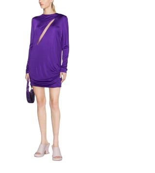 Embrace elegance with this enchanting purple dress, a masterpiece of solid sophistication. Crafted from luxurious 100% viscose, both inside and out, it drapes gracefully, offering a soft, breathable embrace. The long sleeves add a touch of timeless charm, while the round neck exudes classic allure. Designed for the modern woman, its seamless closure ensures a flawless fit. This dress is a celebration of style and comfort, perfect for any occasion where you wish to make a lasting impression.