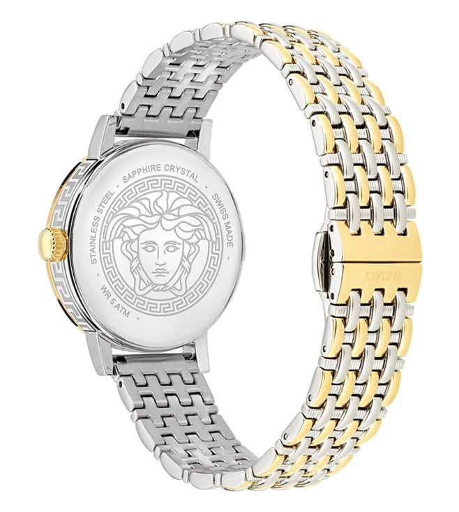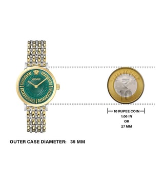 Elevate your style with the Versace VE0A00325 Greca Fortuna Analog watch for women. This stunning timepiece combines luxury with functionality, featuring the iconic Versace Greca pattern on the dial and a sleek stainless steel bracelet. Perfect for everyday wear or special occasions, this watch is not only a fashion statement but also a reliable timekeeper. Treat yourself to timeless elegance and sophistication with the Versace VE0A00325 Greca Fortuna Analog watch.