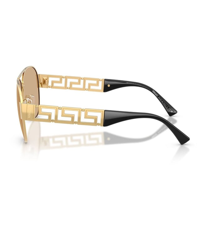A must-have accessory, this pair of Sunglasses from Versace exemplifies sheer craftsmanship. Crafted with care from Metal, the Gold-hued frame is light in weight and assures maximum comfort. The Yellow lenses are made with care from Polycarbonate and ensure complete protection of your eyes. The Full Rim design adds to its overall appeal.