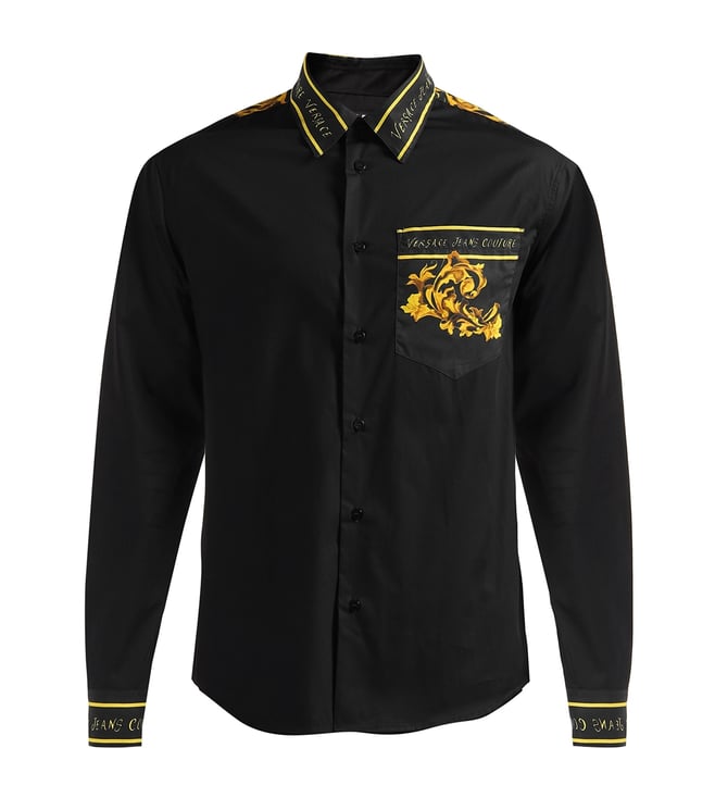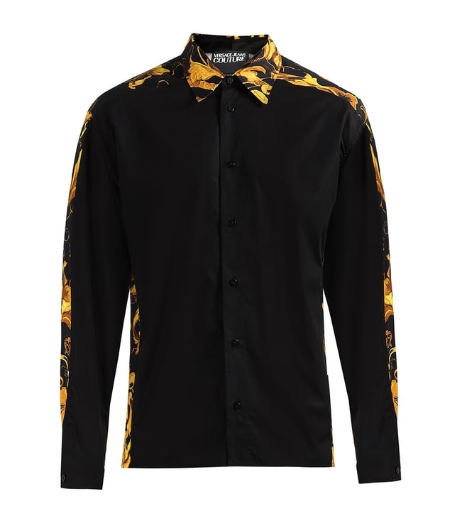 Black Cotton Regular Fit Printed Long Sleeves Casual Shirt