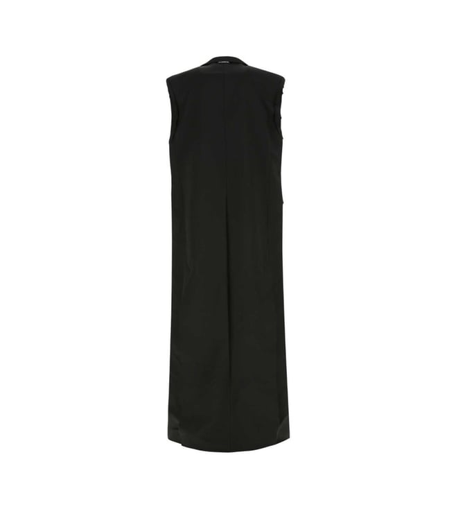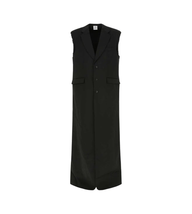 Upgrade your outerwear collection with the Vetements Black coat. Crafted with high-quality materials, this trench coat features collar, sleeveless, front button closure, pockets. for unmatched warmth and style. The sleek design offers a flattering silhouette, while the versatile color and fabric ensure it complements any outfit. Perfect for both casual outings and formal events.